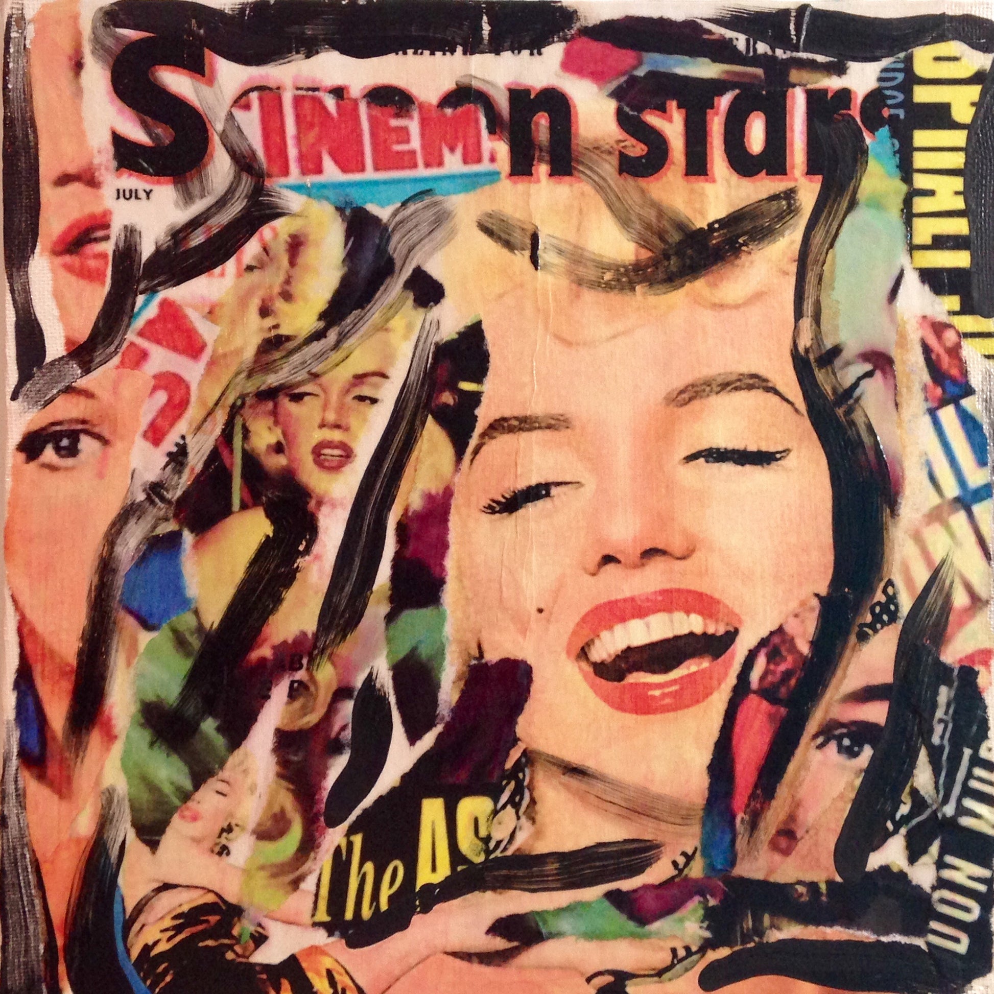 Day 238 artwork created on August 26, 2014 of the Day of the Artist project. This painting is acrylic & collage on 10" x 10" canvas.