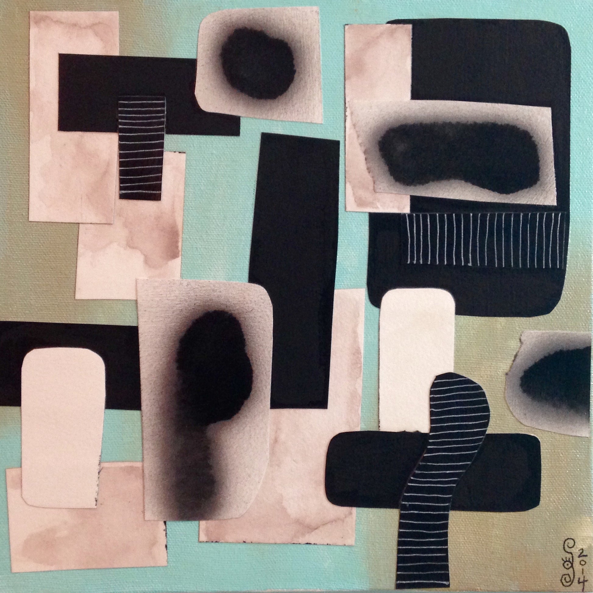 Day 296 artwork created on October 23, 2014 of the Day of the Artist project. This painting is acrylic, spray paint and collage on 10" x 10" canvas.