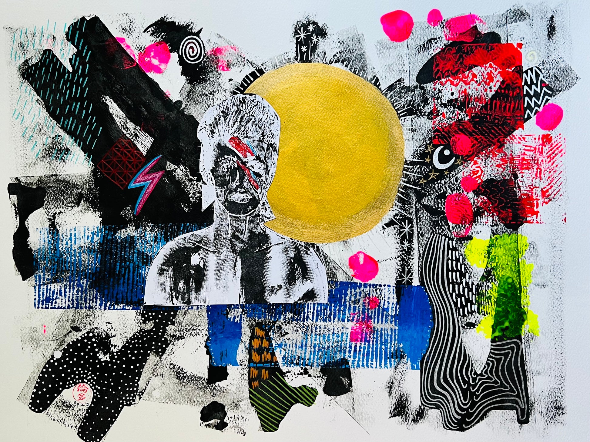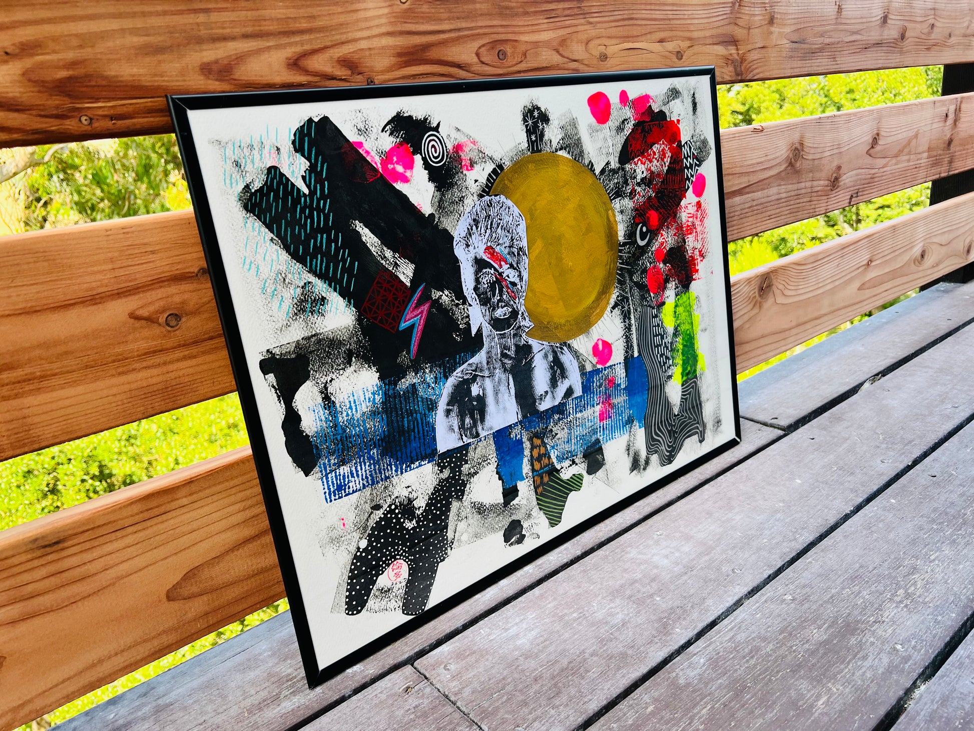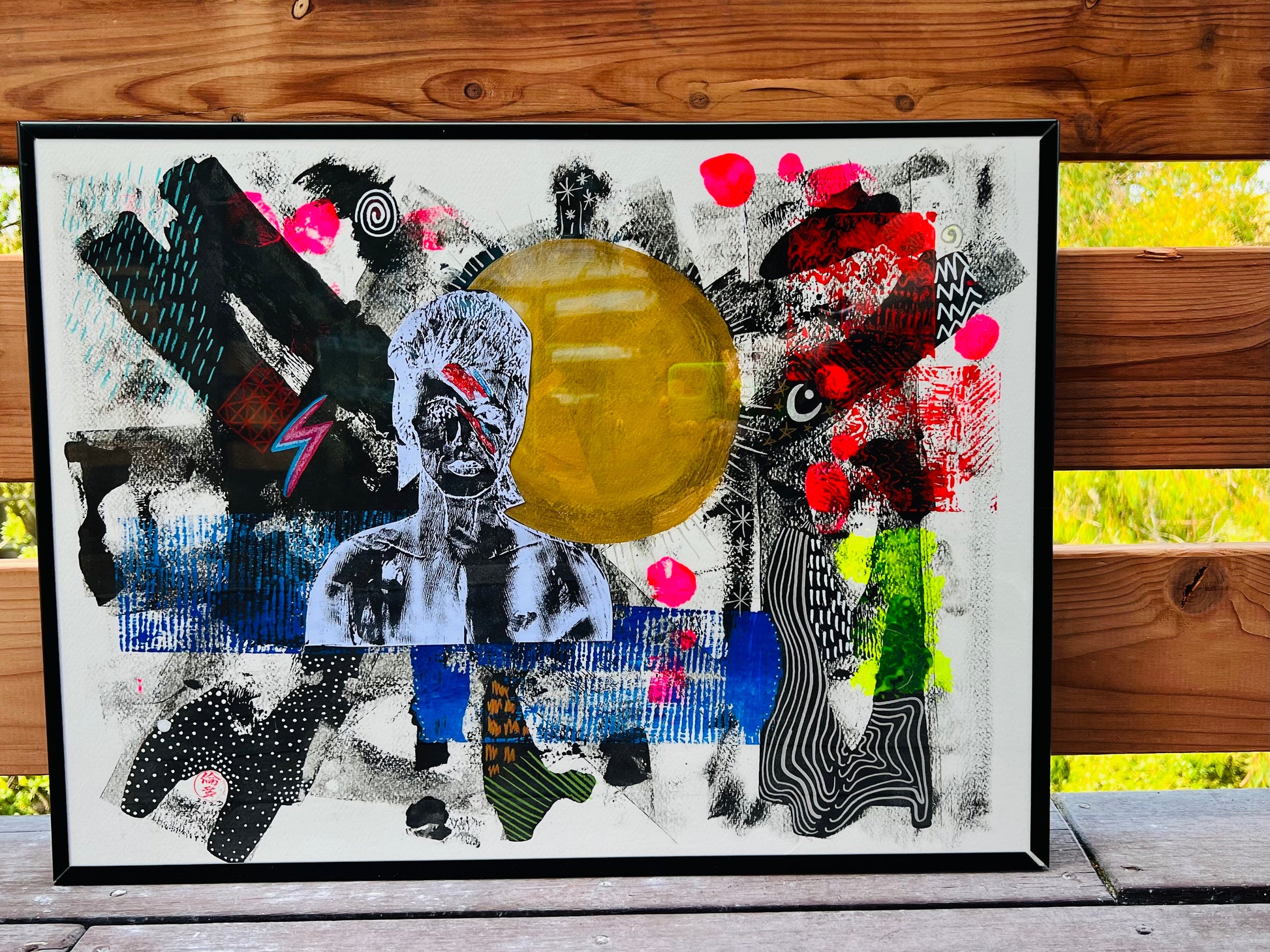 18"x24" Framed David Bowie Ziggy- Mixed media piece on thick watercolor paper